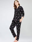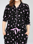 ZEYO Night Suit for Women's Black Heart Printed Cotton Night Dress of Shirt and Pajama set