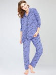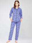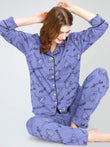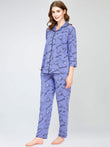 ZEYO Night Suit for Women's Blue Cup & Saucer Printed Cotton Night Dress of Shirt and Pajama set