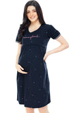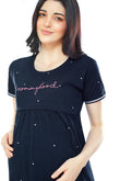 ZEYO Women Cotton Navy Blue Dot Print Maternity & Feeding Night Dress