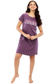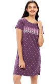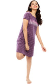 ZEYO Women Cotton Night Dress Purple Heart Printed Short Nighty