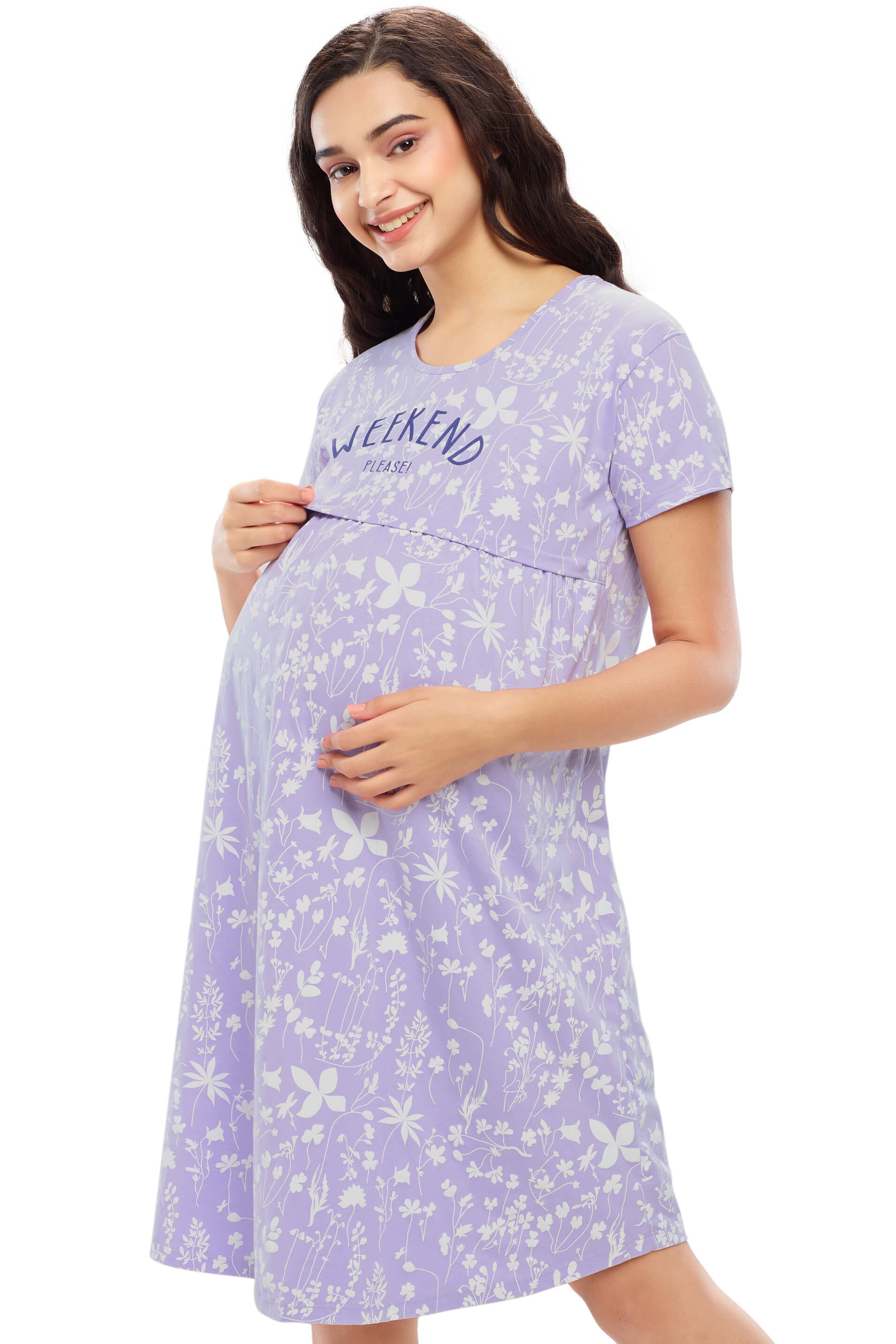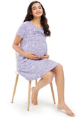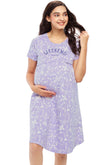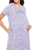 ZEYO Women Cotton Purple Floral Print Maternity & Feeding Night Dress